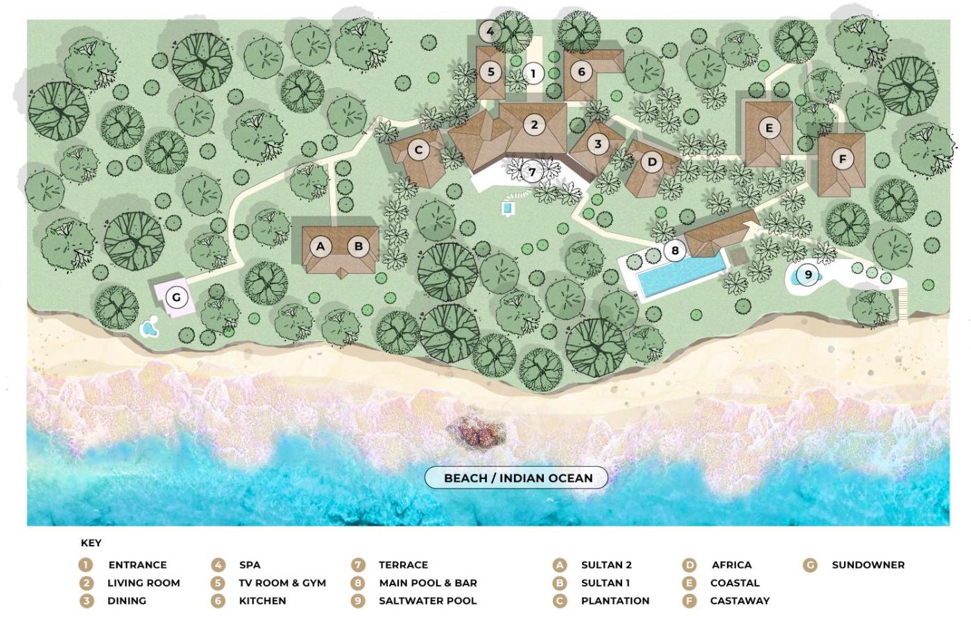 Sultan 1. Boasting a private entrance, this air-conditioned villa includes 2 bedrooms and 2 bathrooms with a walk-in shower and a bath. The villa offers a tea and coffee maker, a seating area, a dining area as well as a terrace with sea views. The unit has 2 beds. ;
